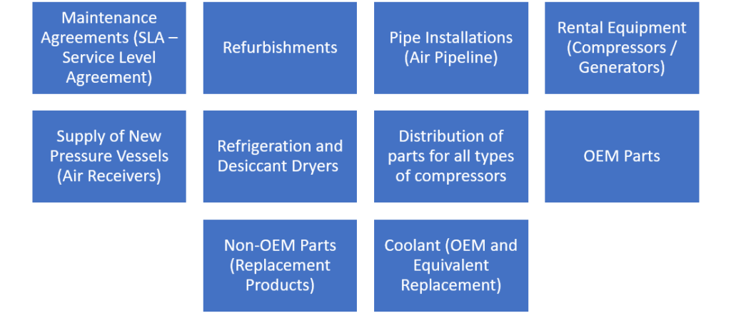 We specializing in the following compressor ranges:
